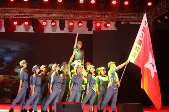 大會休會10分鐘后,一曲《紅旗頌》拉開了文藝匯演序幕。飄揚的紅旗蕩起火紅的海洋,帶人進入革命的世界,心情豪邁,催人奮進。緊接著,《我的祖國》、《十送紅軍》、《唱支山歌給黨聽》、《朗誦》、《打靶歸來》、《在希望的田野上》、《戲曲》、《祖國不會忘記》等節(jié)目一個比一個精彩,一曲比一曲高亢,歡快的鼓點、優(yōu)美的舞姿將中華兒女團結(jié)之心、愛國之情、幸福之悅演繹得酣暢淋漓,現(xiàn)場氣氛熱烈而又溫馨。特別是情景劇《十送紅軍》,悠揚的嗩吶聲、優(yōu)美的舞姿,展現(xiàn)了紅軍前仆后繼、披荊斬棘的頑強戰(zhàn)斗,深深表達了革命根據(jù)地人民與紅軍難舍難分的情感?!独收b》節(jié)目中講述了黨的百年奮斗史,展示了黨的豐功偉績,謳歌了偉大新時代。一段段的深情回憶、一句句鏗鏘誓言,激發(fā)出拳拳愛黨心、濃濃愛國情。節(jié)目匯演中間,播放了《安陽中聯(lián)轉(zhuǎn)型升級宣傳片》、《企業(yè)文化宣傳片》,全體黨員聚精會神地觀看,暗淡的燈光下涌動著對企業(yè)最為強烈地情感,最為堅定的意志。