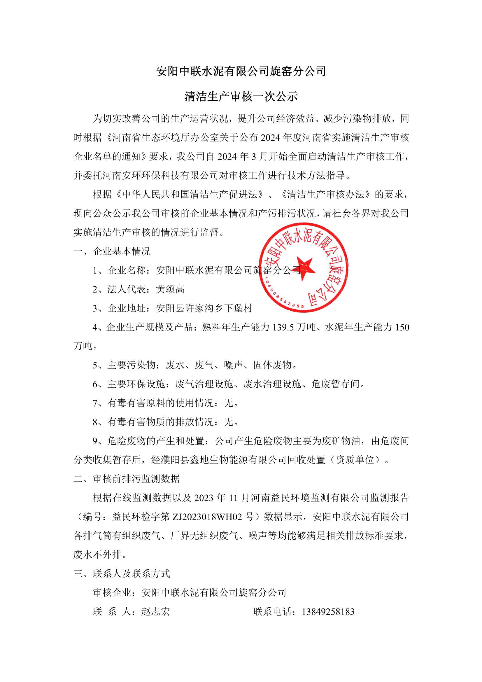 安陽中聯(lián)水泥有限公司旋窯分公司突發(fā)環(huán)境事件應(yīng)急預(yù)案公示