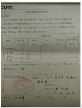 2、致力提升客戶滿意度。為更客觀評(píng)價(jià)公司為客戶提供的的產(chǎn)品和服務(wù)水平,發(fā)現(xiàn)自身存在的不足,推動(dòng)業(yè)務(wù)改善,公司采取各種措施提升客戶滿意度。經(jīng)調(diào)查了解,與當(dāng)?shù)仄渌嗥髽I(yè)相比,我司在客戶中有良好的口碑。